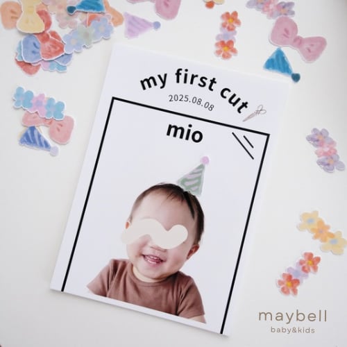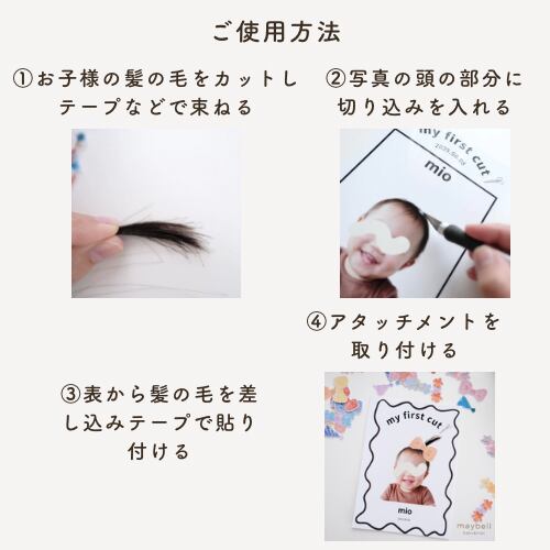 【 ファーストカット記念フォト台紙F + 選べるアタッチメント(リボン/花冠/パーティーハット) 】