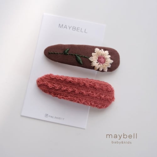 刺繍フラワー ヘアピン2点セット|ブラウン×レッド|ベビー・キッズ