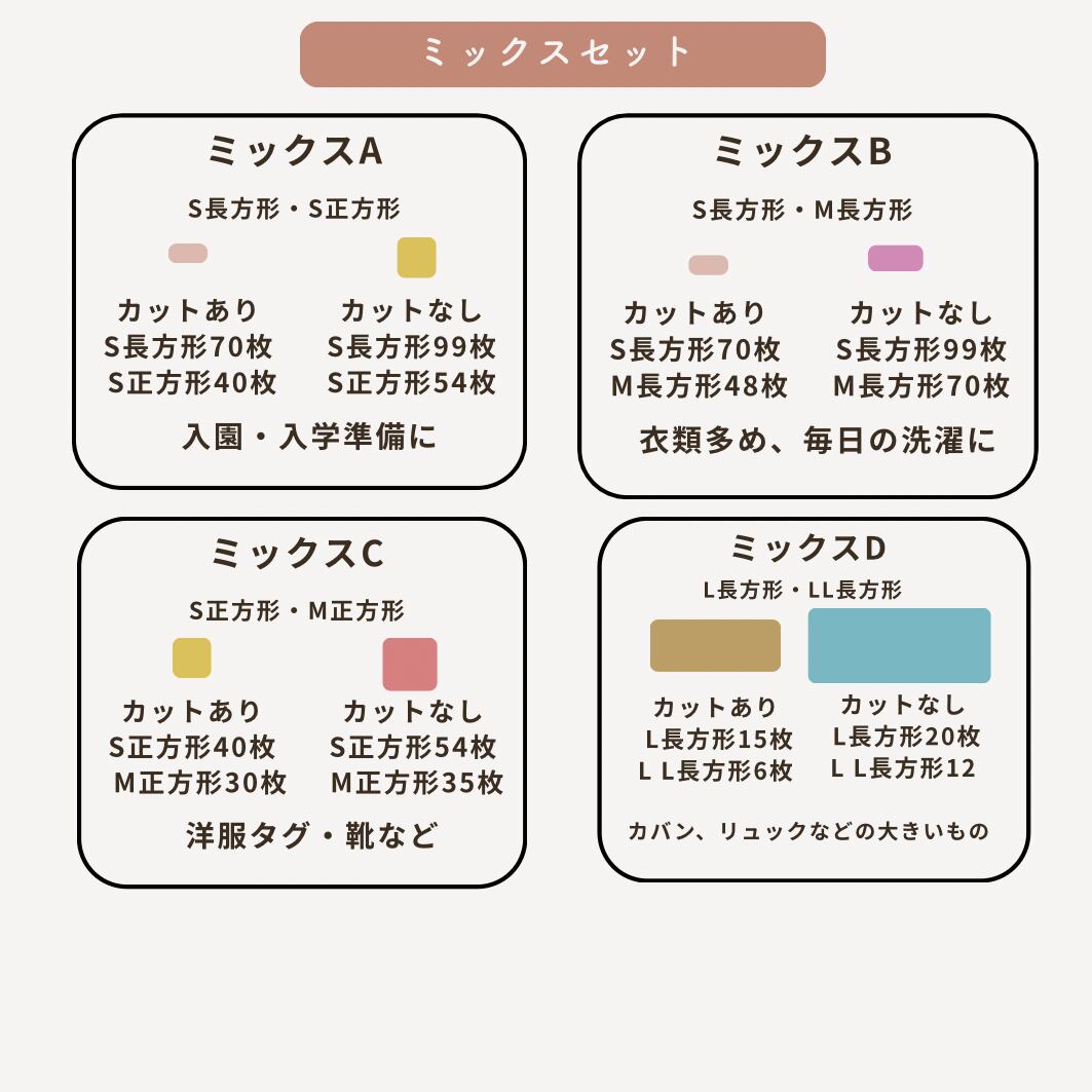 各サイズ単品/ミックスセットをご用意しています。