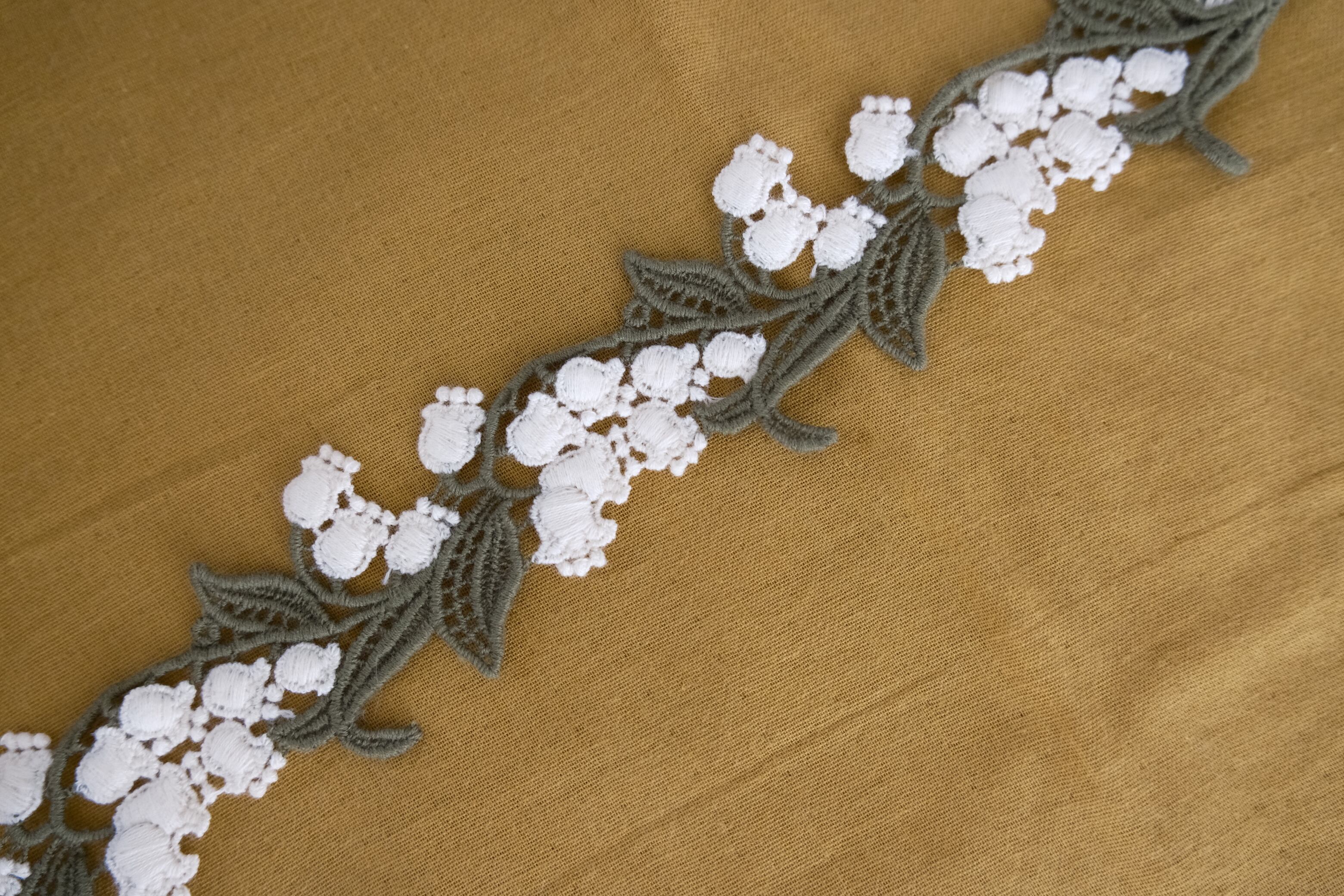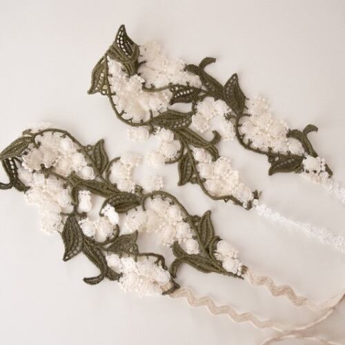 立体感のあるスズラン刺繍の希少なレースを使用したヘアバンドです。
