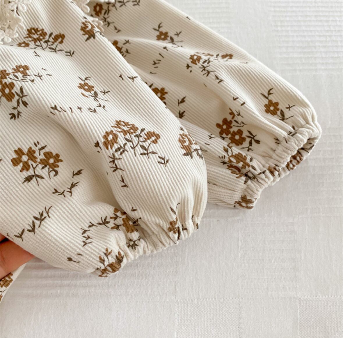 【 ボンネット付き花柄コーデュロイロンパース 】